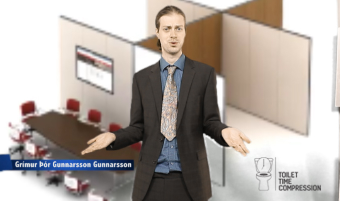 Jake Laffoley Exhibition open: 2.7.16 – 24.7.16 Private view: Thursday June 30th, 19:00 – 21:00 “Entrepreneurs invent waste solutions that donʼt waste innovation.” - Grímur Þór Gunnarsson, 2016 b.1984, Reykjavik, Iceland. Grímur Þór Gunnarsson, Business Strategist, Philosopher, Entrepreneurial Viking and CEO of Toilet Time Compression, warmly invites you to the reception of T.T.C. Department of Marketing and Innovation, London Office. Gunnarsson will present his winning surveillance company which expels unproductive workers from the toilets after 2 minutes. |